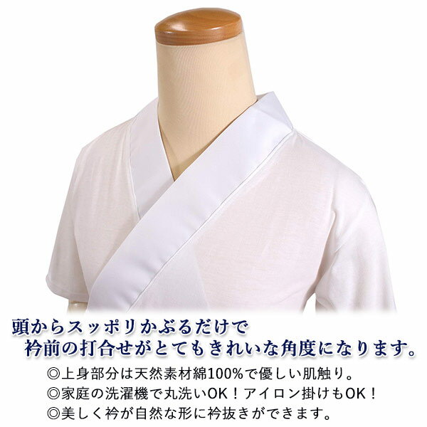 らくらくTシャツ長襦袢 女性用・半袖 レディース M L LLサイズ 単品 頭からスッポリかぶるだけで、 衿前の打合わせがとてもきれいな角度になります。