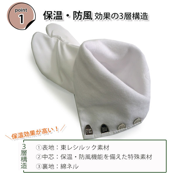 【東レシルック 保温足袋】 4枚こはぜ付き たび本体は3層構造で、保温・防風効果あり。