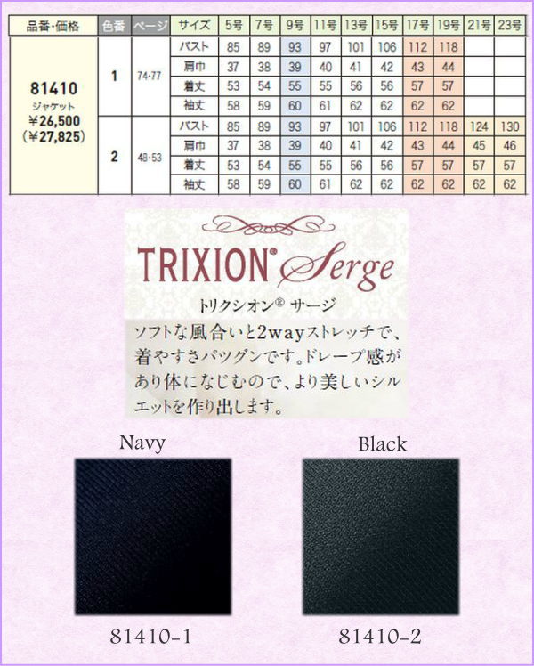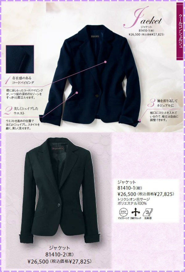 81410 ジャケット クールコンシェルジュ トリクシオンサージ ストレッチ 2色展開 en joie 株式会社ジョア 制服