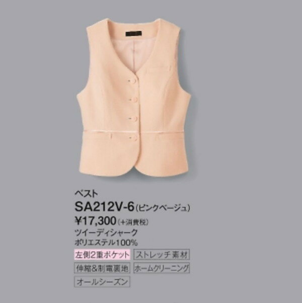 SA212V SA212V-2 SA212V-6 ベスト ユニフォーム 事務服 制服 株式会社神馬本店 JINBA送料は全国一律です。