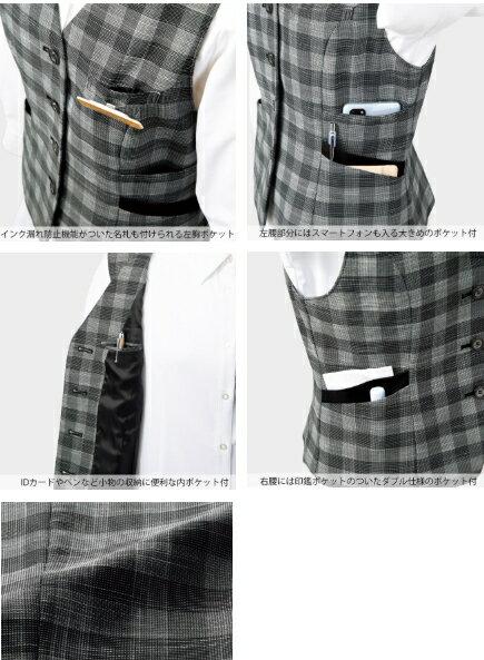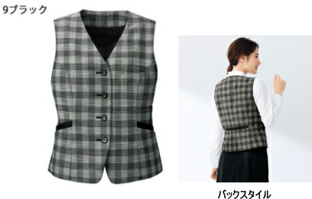 FV36453 fv36453-9 ベスト ブラック モノトーンブロックチェック ユニフォーム 事務服 FOLK送料は全国一律です。