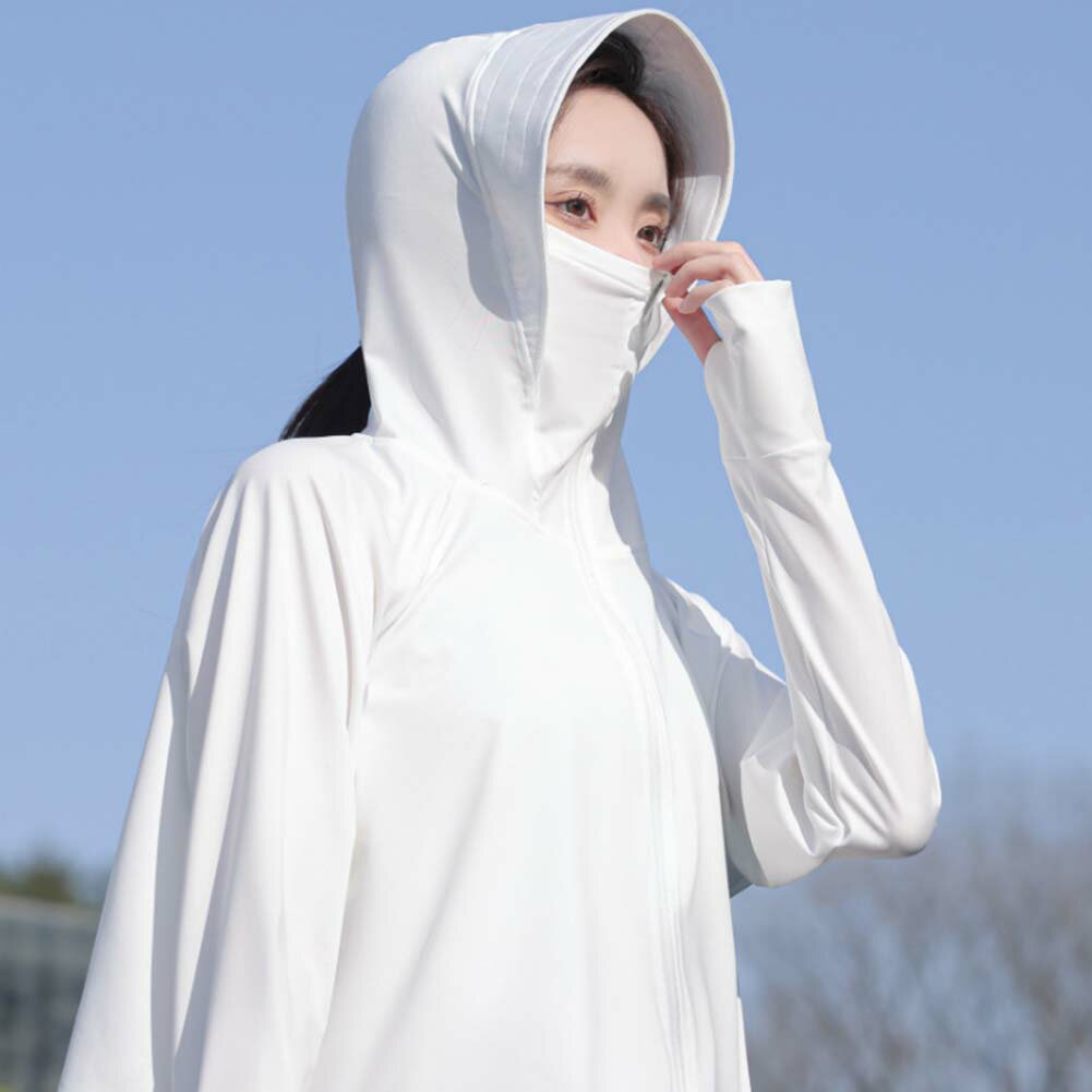 【実用性が高い】ジッパーを一番上に閉めるとタートルネックになり、またフード付きで、ネックと頭部までしっかり紫外線からお守りします。