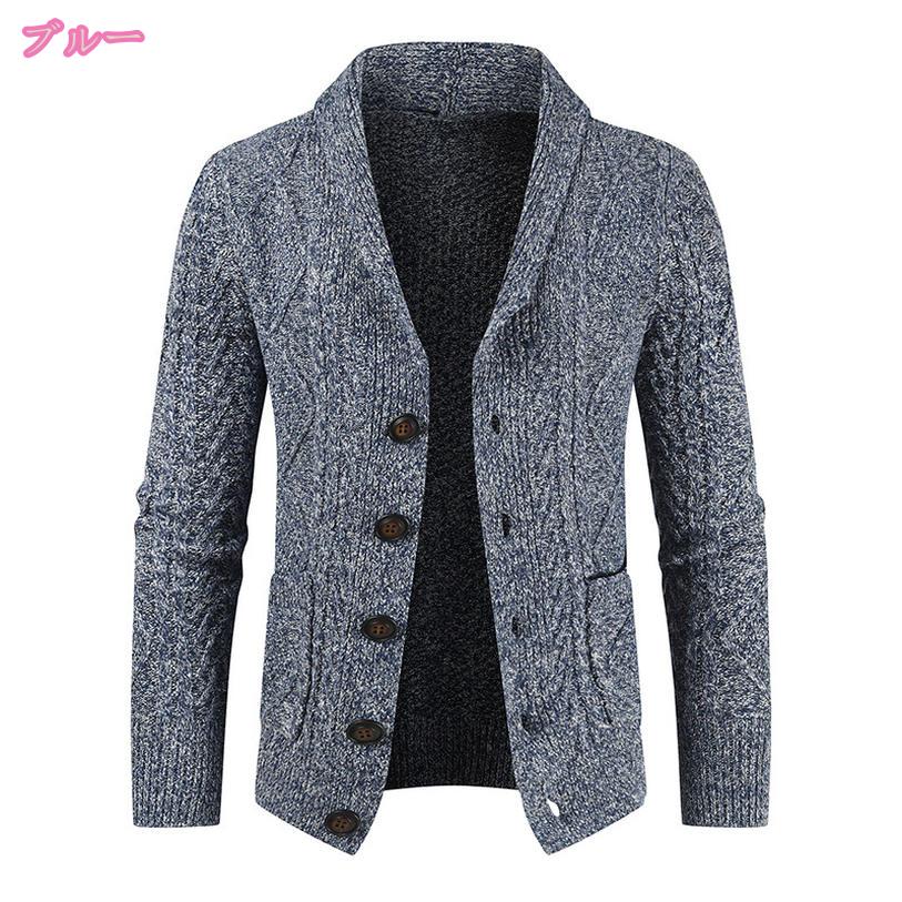 表地:ポリエステルメイン素材:ポリエステルメイン素材:ポリエステル 男性用のショールカラーニットカーディガンです。