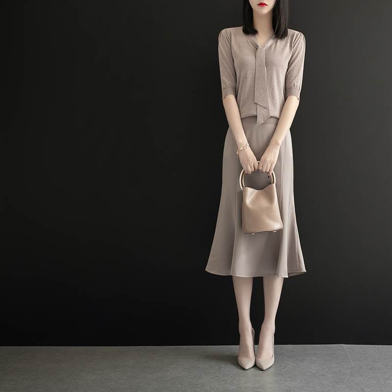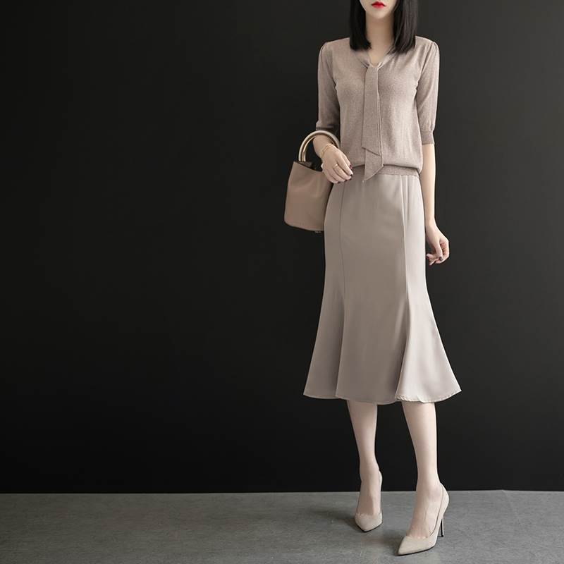 abc-4187光沢感のある華やかラメニットと女性らしいラインのマーメイドスカートのツーピースセットジャケットやコートに合わせやすいシンプルなデザインです