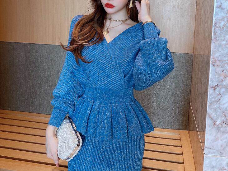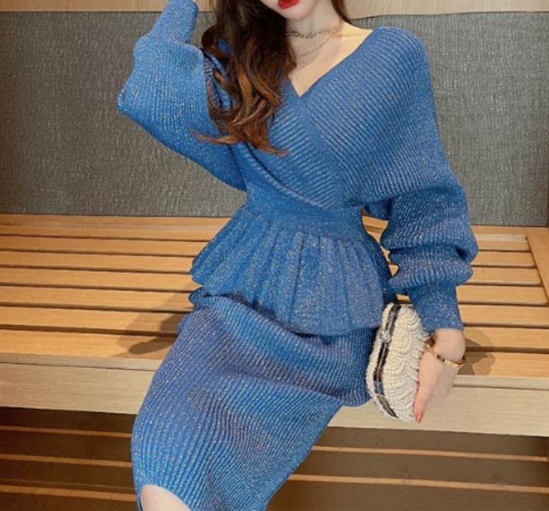 mep03863 ニット トップス スカート セットアップ レディース 2点セット 個性的 秋 冬 ひざ丈 長袖 Vネック 襟なし スリム タイト 細身 フリル ウエストマーク カラバリあり ブラック ベージュ レッド ピンク ブルー 無地 フリーサイズ パーティー イベント 美脚 脚長 細見え 若見え 高見え 格上げ スタイルアップ モテ ベーシック シンプル ナチュラル エレガント きれいめ セクシー フェミニン おしゃれ こなれ感 抜け感 存在感 主役級 上品 20代 30代 40代 デート お出かけ SNS 映え#ニット #トップス #スカート #セットアップ #2点セット