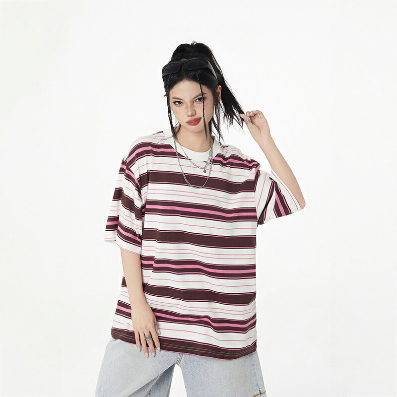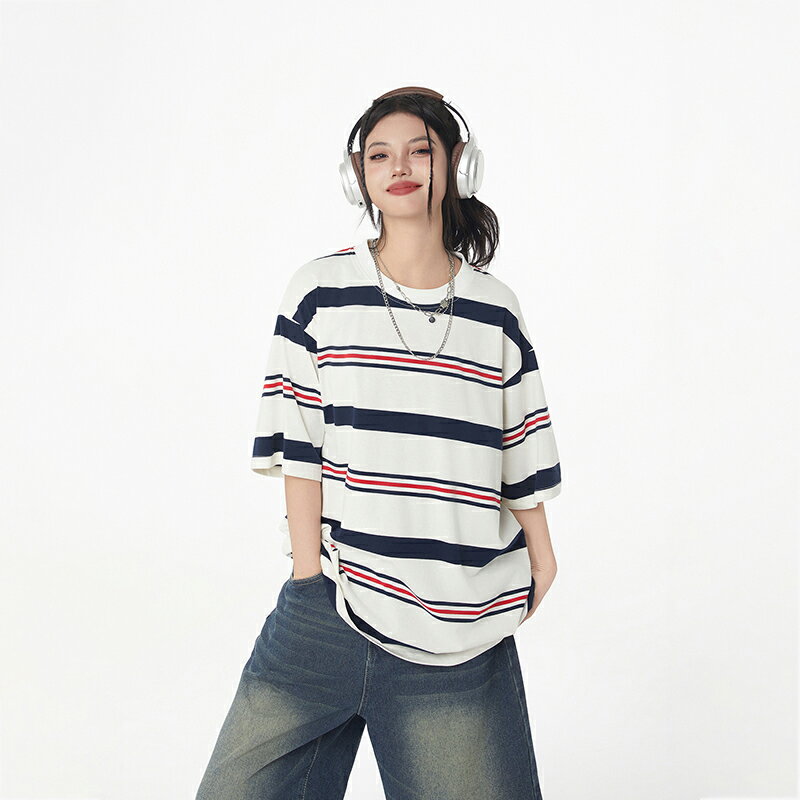 シンプルなボーダー柄とクルーネックデザインで、どんなスタイリングにもマッチします。