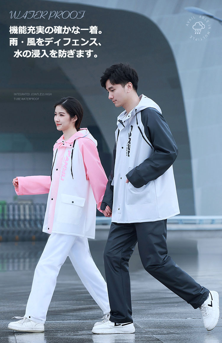 通勤や通学、アウトドア活動にも最適なこのレインスーツは、防水性に優れ、電動自転車やバイクに乗る際も安心。