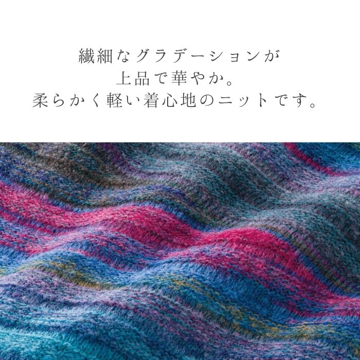 【LL-3L】バスト:106(93-108)肩幅:37 袖丈:23 身丈:58 素材 アクリル75%・ナイロン15%・毛10% 仕様 色:ブルー系 ・日本製