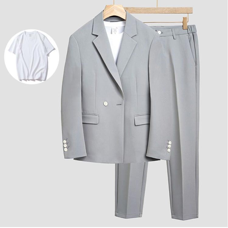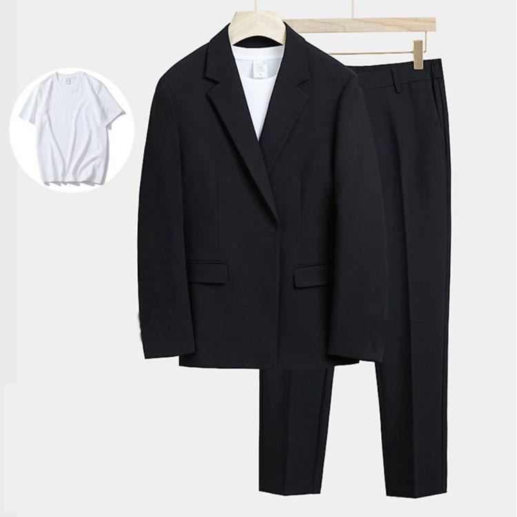 ジャケット、パンツ、半袖のセットで旬な着こなしが完成するセットアップ。