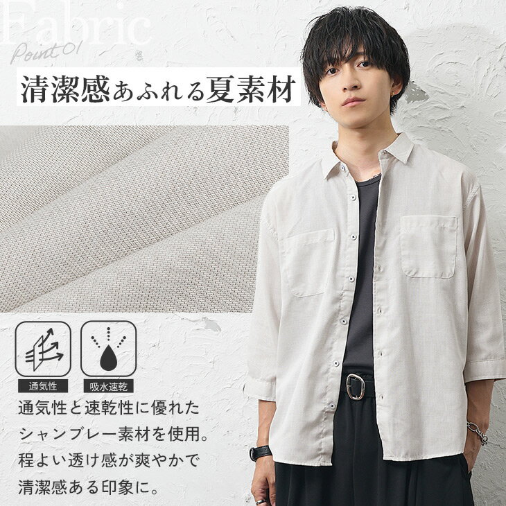 ●FABRIC(素材)「清潔感ある透け感」通気性と速乾性に優れたシャンブレー素材を使用。