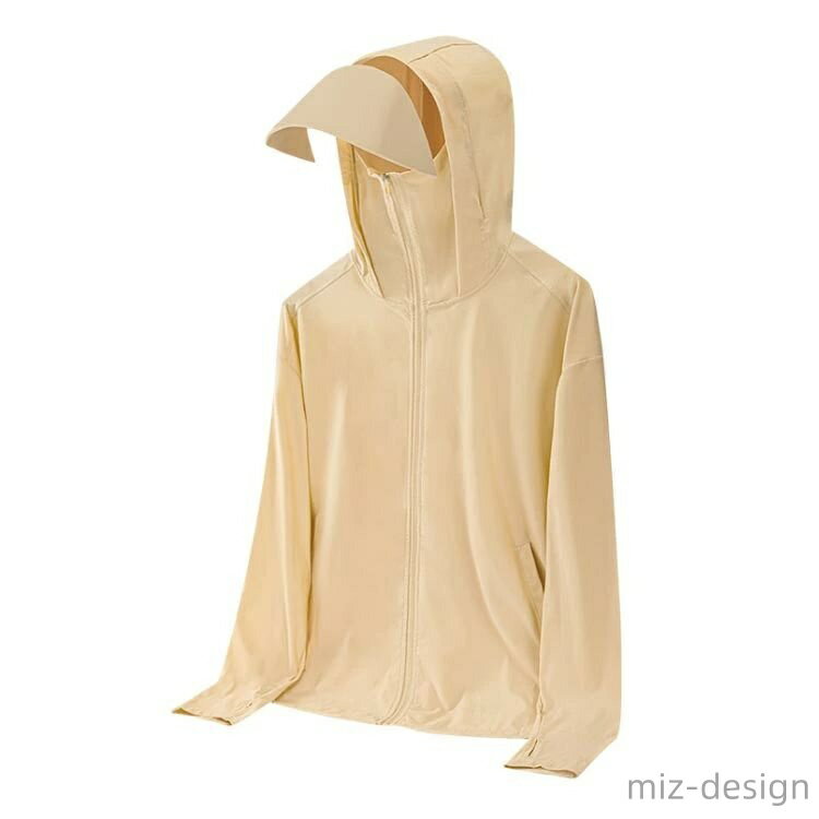 つば幅広で360度紫外線をカット!99%の遮蔽率を誇り、手の甲までしっかりとカバーするUVパーカー 吸水速乾 接触冷感 UPF100+紫外線カット+通気性の良い冷感素材の高機能性があるUV パーカー。