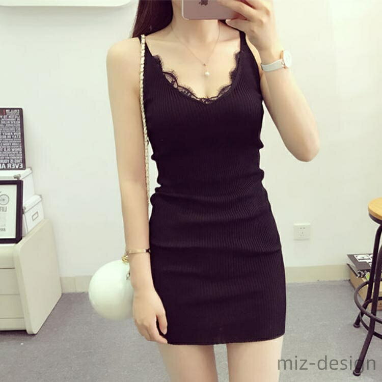 ・タイトなシルエットで女性らしい印象のキャミワンピース。