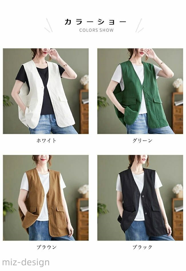 メーカー希望小売価格はメーカーカタログに基づいて掲載しています 商品詳細 レディース前開きサマーベストが新入荷 夏シーズンに必ず大活躍、コーデのアクセントになることは間違いなし シンプルトップスの上に重ね着するだけでコーデ完成 レイヤード感をプラスして、シャツやカットソーを着る時期に重宝 実用性とファッション性兼ね備え、大きめスクエアポケットが付いてるのも嬉しい 流行に左右されず長く愛用でき、チラリと個性を出します いつものコーデをワンランク上、サラッと印象を変えるマストアイテム コーデに馴染みやすい、落ち着いたカラバリを用意 カラー:ホワイト グリーン ブラウン ブラック 素材 ポリエステル サイズ(cm) M L XL 2XL M 着丈67 バスト118 L 着丈68 バスト122 XL 着丈69 バスト126 2XL 着丈70 バスト130 ご注意: