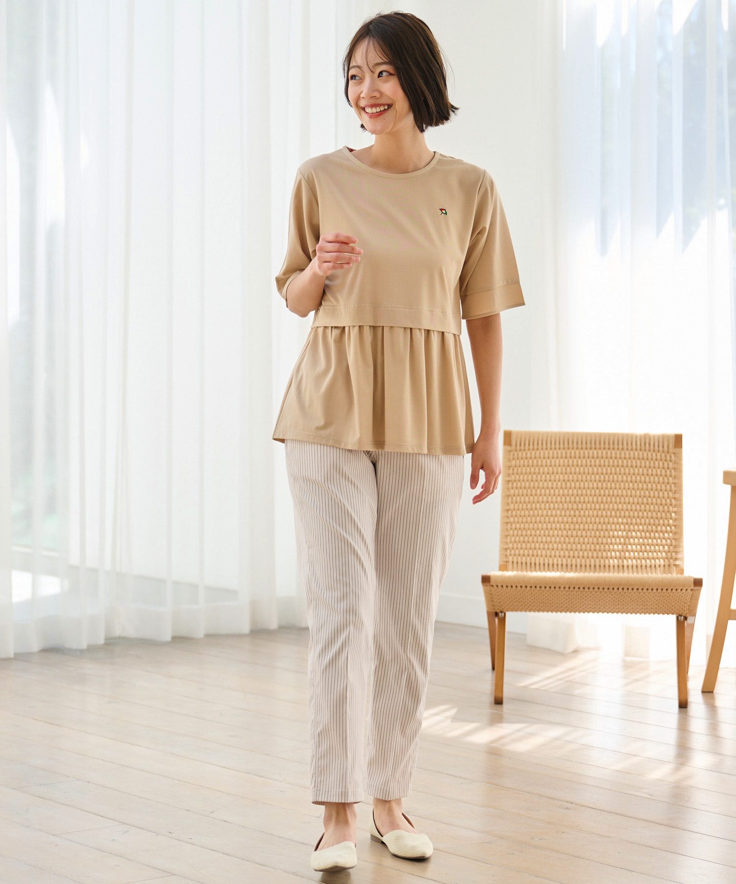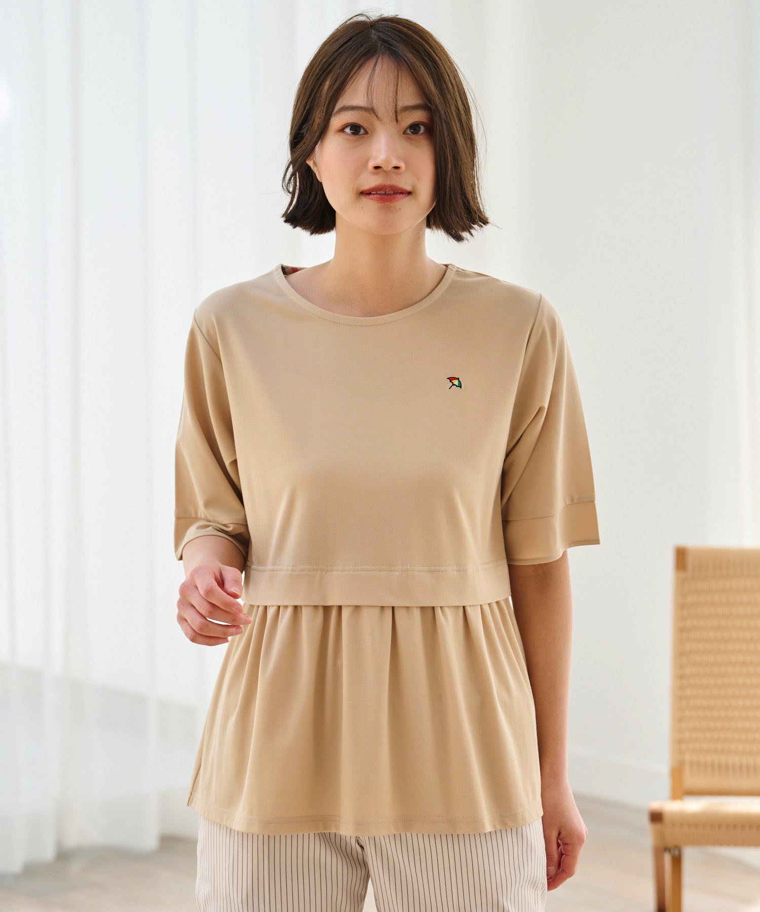 さらりとした肌触りのライトカノコ素材を使用しており、カットソー素材ながらブラウスのような上品さも兼ね備えているため、きれいめなスタイリングにも馴染みやすいのが特徴。