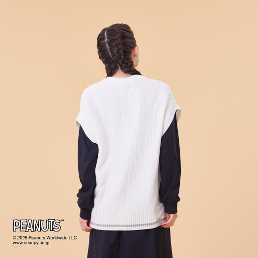■適合サイズ表はこちらヘルシーライフをPEANUTSアイテムと一緒に!編地が可愛い前ボタン仕様のベスト。