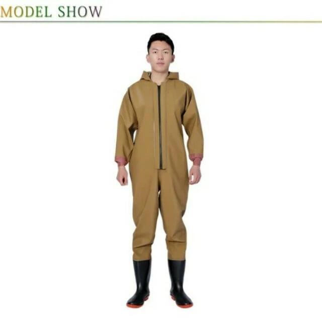 ・このウェーダーはつなぎのように全身を覆うので動きやすく、上半身が水はねで濡れることもありません。