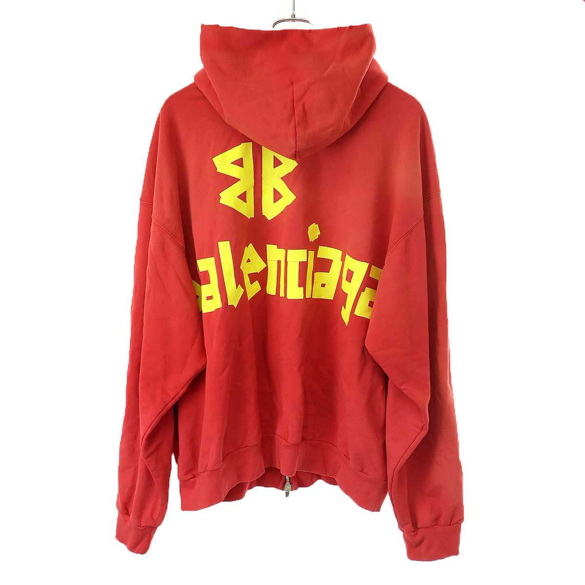 )BALENCIAGA バレンシアガ 23SS Tape Type Ripped Pocket Hoodie ジップアップヴィンテージ加工パーカー 744451 TOVB1 レッド XXS 「BALENCIAGA バレンシアガ」一覧はこちら