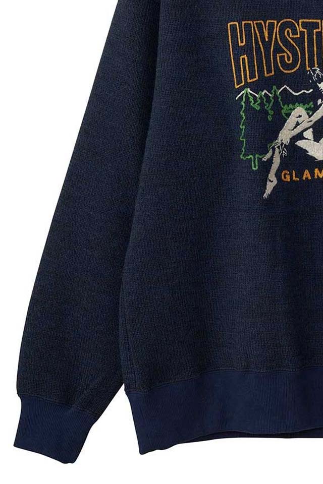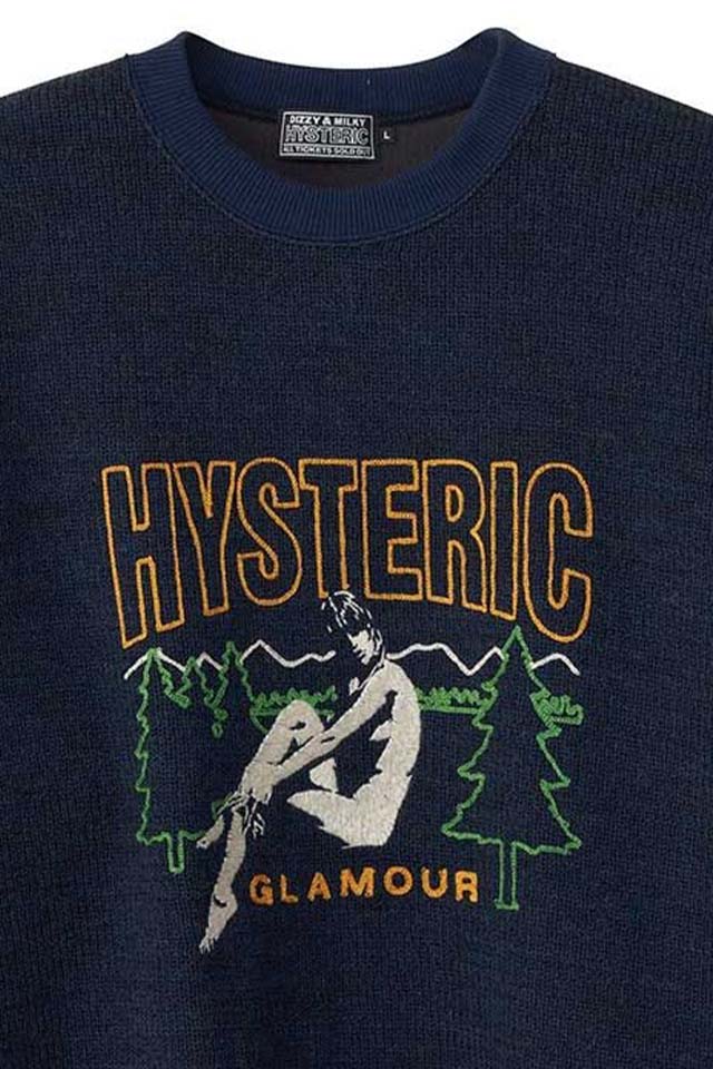 ★HYSTERIC GLAMOUR ヒステリックグラマーのニットの様な見た目とスウェットの様な着心地が特徴的で、フロントにグラフィック刺?デザインが施されたクルーネックスウェット★