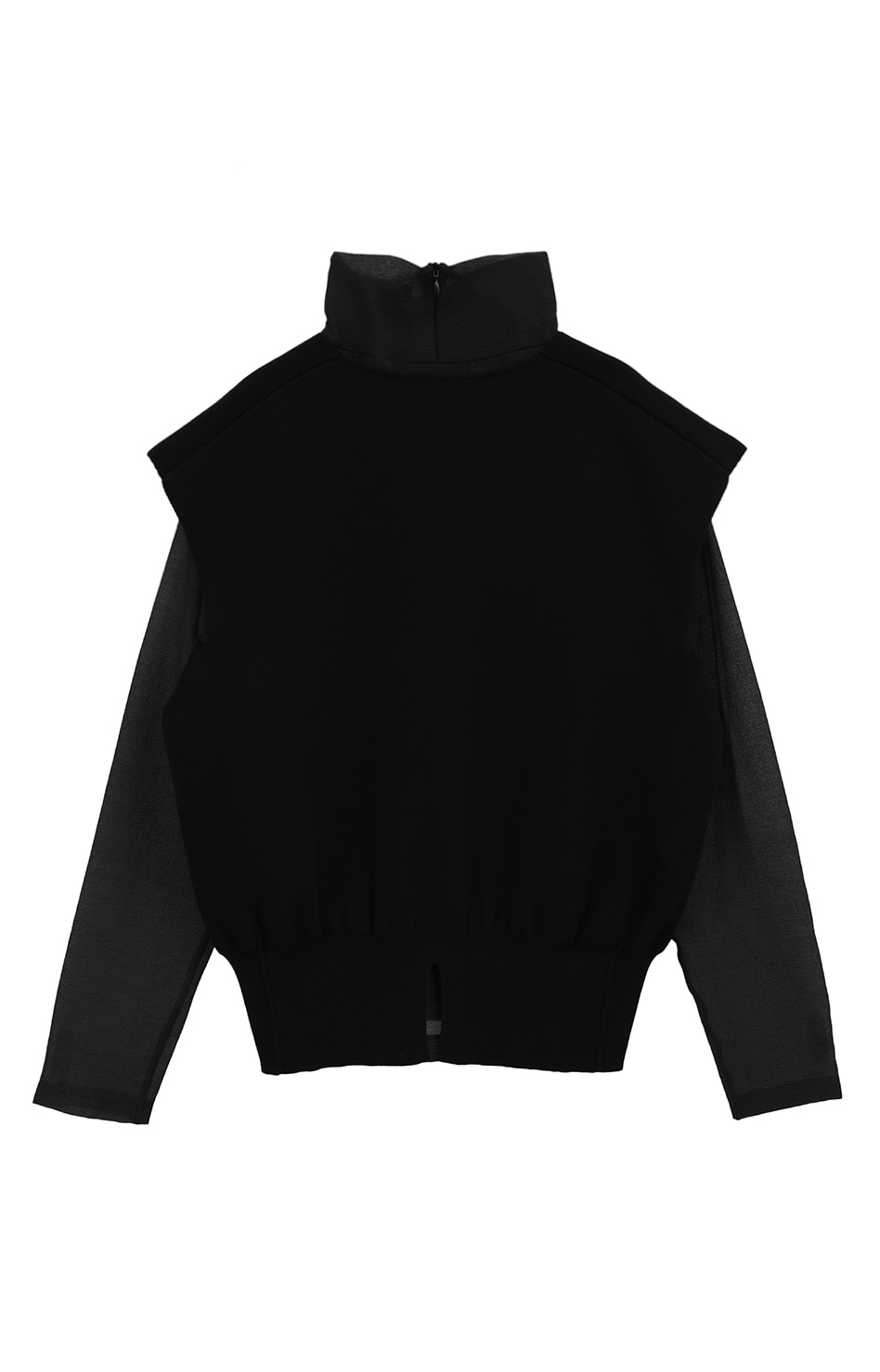【商品詳細】 ニットベストとシースルートップスがレイヤードされたアイテム。