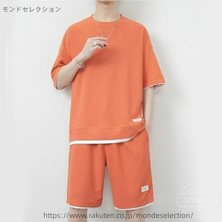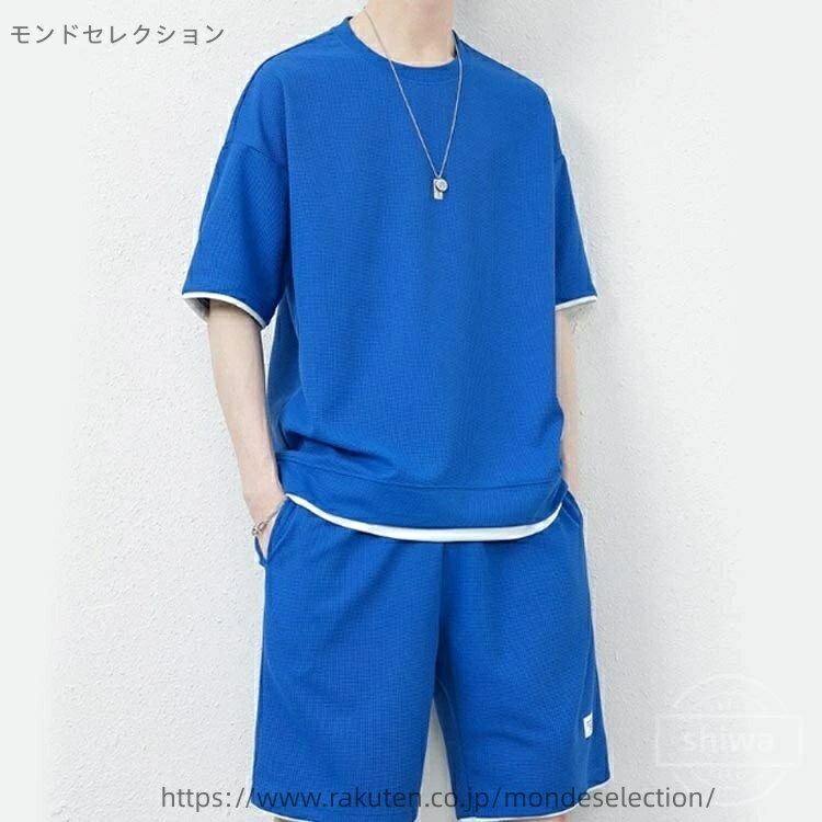 サラリとした着心地の半袖トップス&ハーフパンツの2点セットアップ。