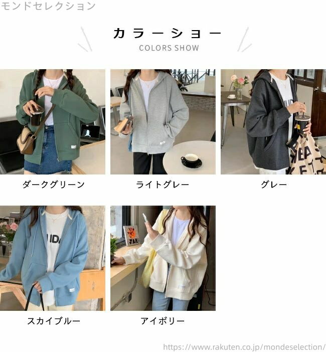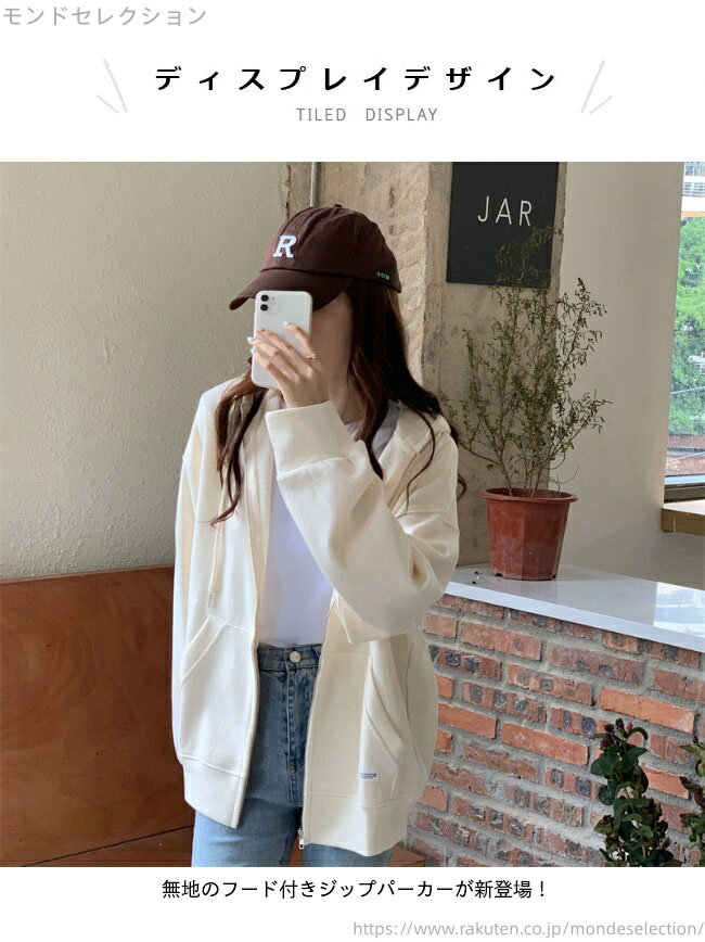 ■無地のフード付きジップパーカー 無地のフード付きジップパーカーが新登場! シンプルな無地素材で、大人女性にピッタリ ゆったりとしたシルエットでカジュアルなお洒落感を演出! 5色をご用意しましたので、ぜひお楽しみください♪ 通気性も吸水性も良く、季節を問わず着用してオススメ♪