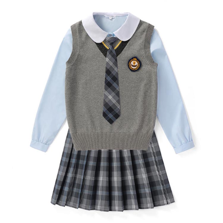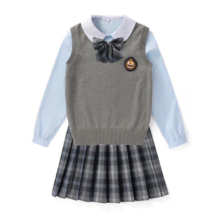 ベスト+シャツ+スカート+リボン+バッジのお得な5点セット。
