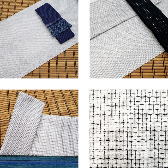 世界にひとつ あなただけの しあわせ浴衣 年齢を問わず 定番人気の“ 白 地 ” 黒の麻糸で絣柄を織り込んだ逸品 縦に5本の太い縞 柄の加減で濃淡に 織機とは言え クオリティー高い仕上がり 太さと素材の異なる糸が交わり 小さな凹凸の並んだ面は ほんのりシャリっとした肌触りが魅力
