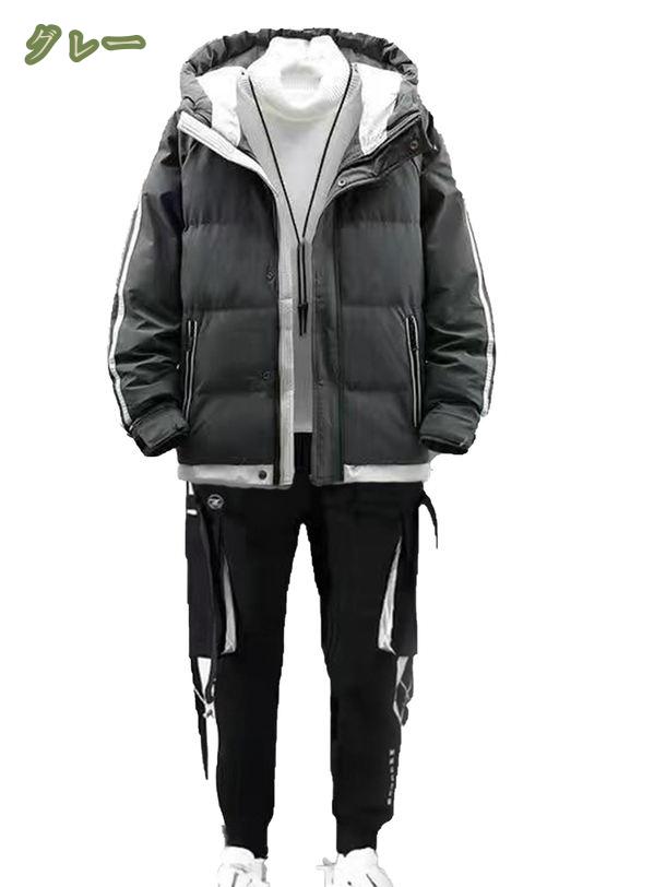 【商品仕様】 材質:綿 ポリエステル 対象:メンズ サイズ:M-4XL 季節:秋 冬 春 中綿ジャケット+ジャージ+ロングパンツ(裏起毛付き)