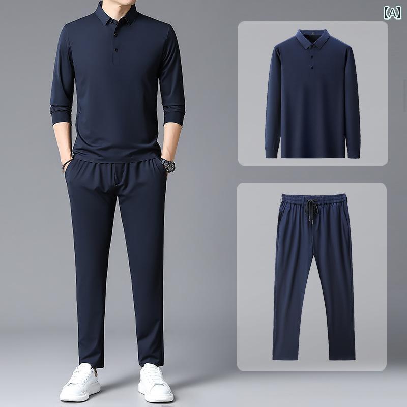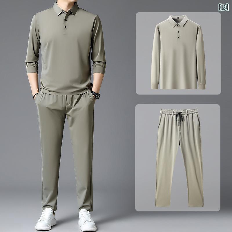 ・カテゴリ: メンズカジュアルセットアップ・スタイル: ビジネスカジュアル・厚さ: 薄手・丈: 長ズボン・上衣スタイル: Tシャツ・上衣袖丈: 長袖・主な素材: 桑蚕シルク100%・シーン: カジュアル・カラー展開: ネイビー、カーキ、ブラック、アッシュグリーン・サイズ展開: M、L、XL、2XL、3XL、4XL、5XL、6XL