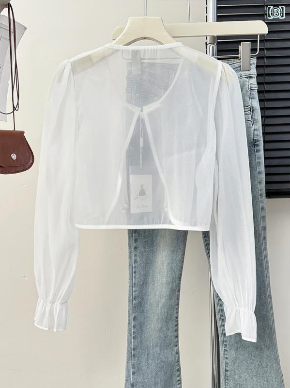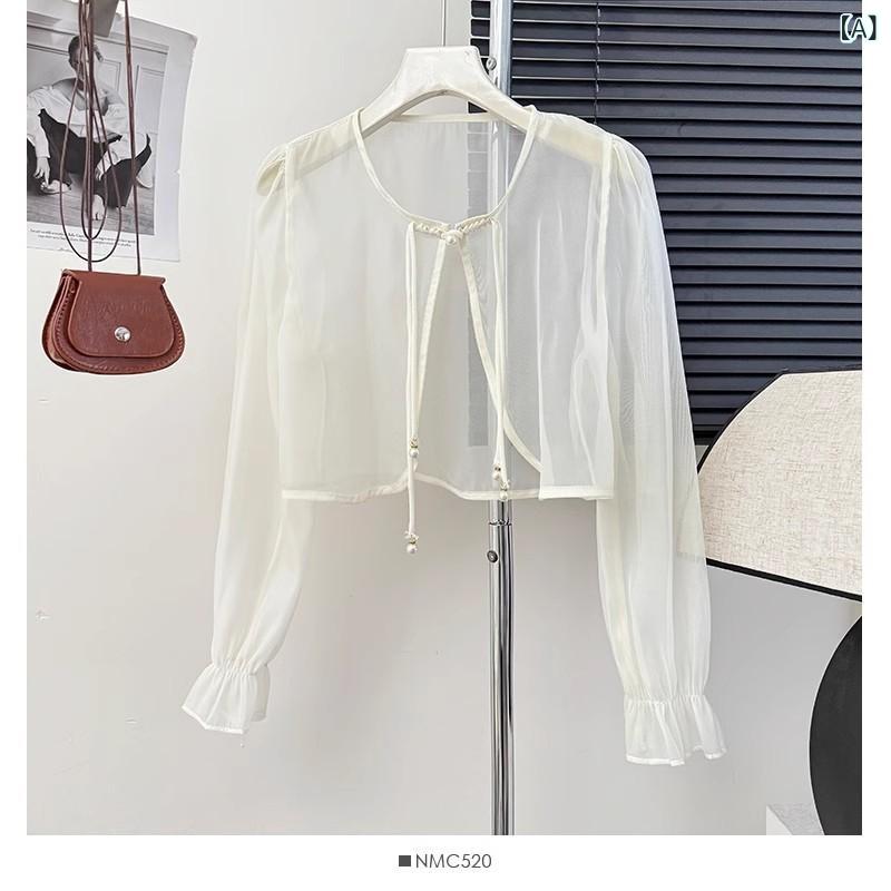 ・主な素材: ポリエステル70~80%・柄: 無地・カテゴリ: カーディガン・加工: イージーケア・フィット: レギュラー・着丈: ショート(40~50cm)・ネックライン: Vネック・袖デザイン: フリル袖・袖丈: 長袖・デザイン要素: タイアップ・カラー展開: アプリコット、ホワイト、ブラック・サイズ展開: ワンサイズ・スタイル: スウィート、ガーリー・着用スタイル: ショール・性別: レディース