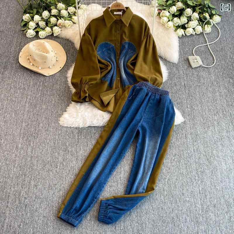 ・カテゴリ: カジュアルセットアップ・スタイル: きれいめ、エレガント・主な素材: スパンデックス30%以下・袖丈: 長袖・袖の種類: パフスリーブ・セット内容: トップスセット・対象: レディース・カラー展開: ブルーホワイト、カーキブルー、グリーンブルー、ピンクブルー・サイズ展開: フリーサイズ