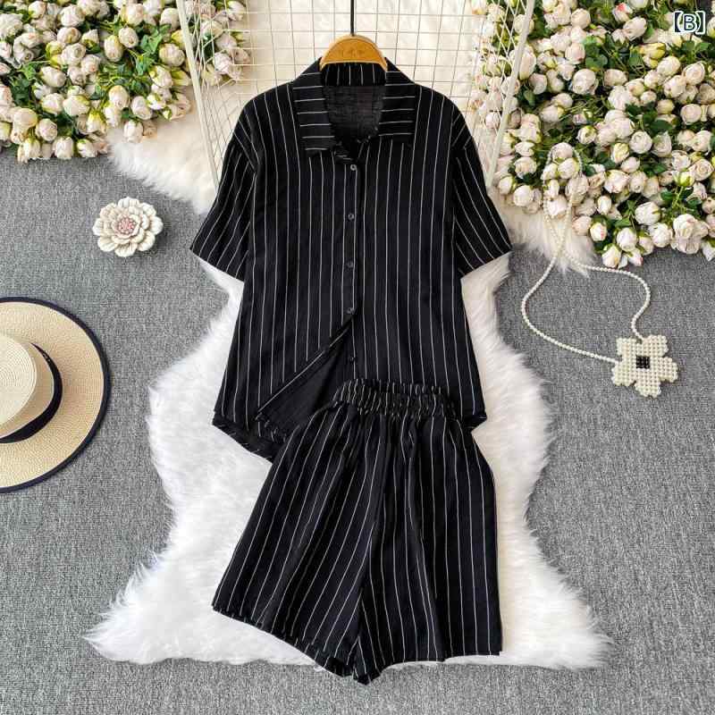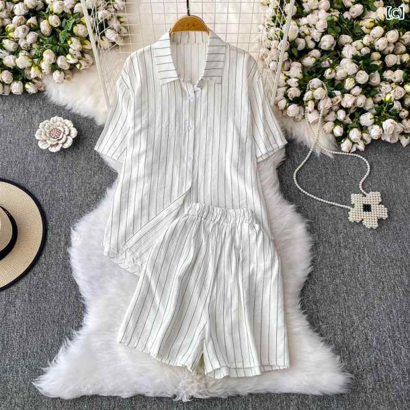 ・カテゴリ: カジュアルセットアップ・スタイル: エレガント、通勤・主な素材: ポリエステル 30%以上50%未満・パンツ丈: ショート丈・袖丈: 半袖・袖タイプ: レギュラー・対象性別: 女性・セットアップ種類: パンツタイプ・カラー展開: ライトアプリコット、ブラック、ホワイト、カーキ・サイズ展開: フリーサイズ