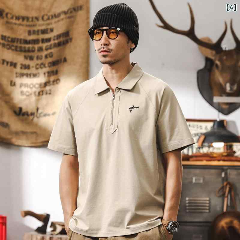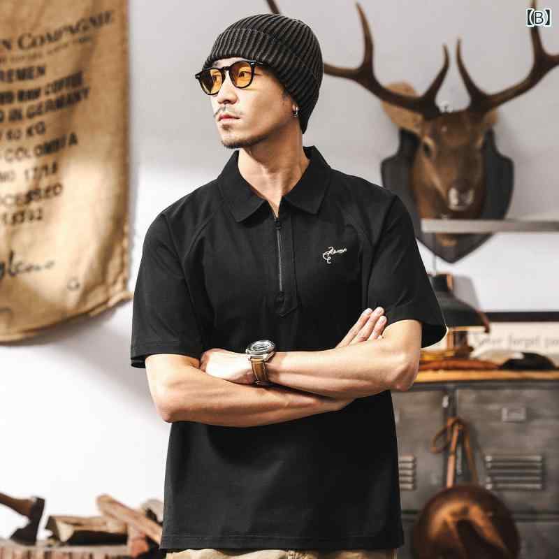・スタイル: アメカジ・主な素材: コーマ綿96%以上・柄: レタープリント・フィット: ルーズ・デザイン: プルオーバー・ネックライン: 襟付き・袖丈: 半袖・厚さ: 薄手・デザイン詳細: ジッパー装飾、刺繍・加工: ノーアイロン・カラー展開: カーキ、ブラック・サイズ展開: M、L、XL、2XL、3XL、4XL・カテゴリ: Tシャツ・袖型: ドロップショルダー・重量: 約250g〜300g未満・素材機能: 抗菌・対象年齢: 成人・対象性別: 男性