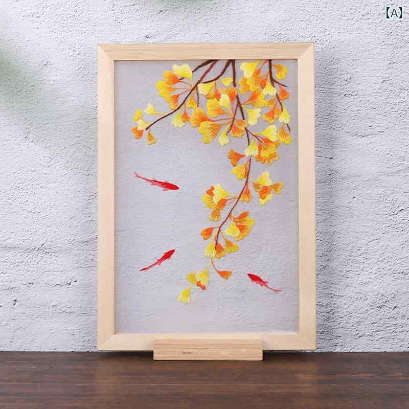 ・カテゴリ: 布製刺繍品・スタイル: 中国古典・刺繍タイプ: 蘇州刺繍・デザイン展開: 錦鯉杏秋、彼岸風魂