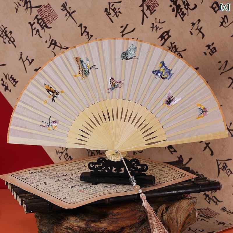 ・カテゴリ: 扇子・素材: 絹布・サイズ: 20cm・工法: 刺繡・骨組素材: 竹・スタイル: 中国風・柄展開: 化蝶、竹隠、嫩柳春燕、白玉蘭、梔子花、桃花落、恵蘭蝴蝶、千里江山、桂花兔、藍蝴蝶、紫藤、銀杏、九尾狐、苺兎、蓮