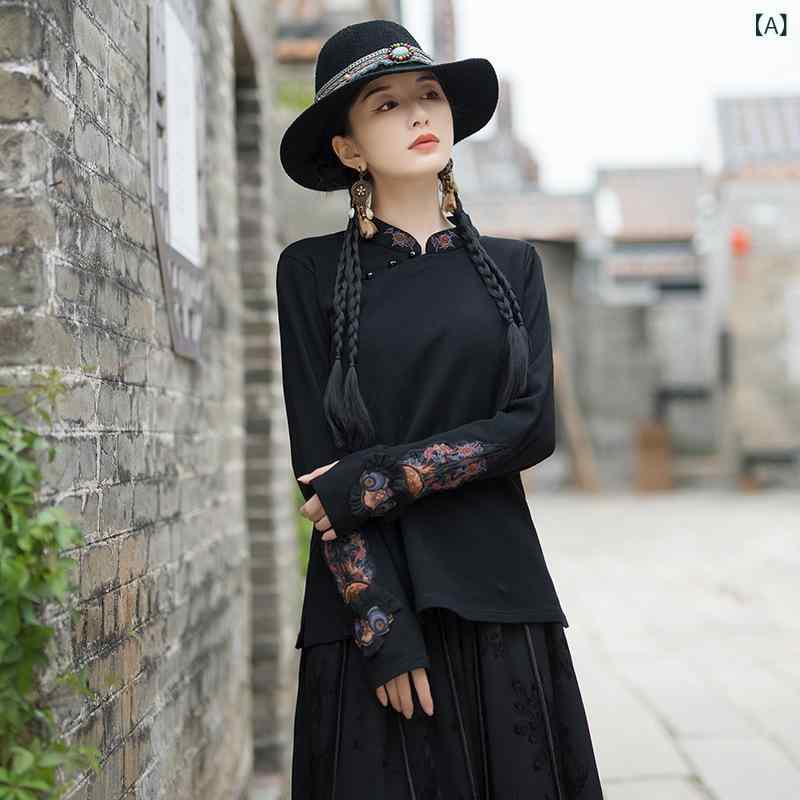 ・カテゴリ: Tシャツ・デザイン: プルオーバー・主な素材: コーマ綿95%以上・柄: 植物花柄・袖丈: 七分袖・工法: 刺繡・フィット: スリム・ネックライン: スタンドカラー・袖タイプ: レギュラー袖・流行要素: フリル、刺繡・カラー展開: ブラック・サイズ展開: M、L、XL、2XL、3XL・スタイル: レトロ、エレガント
