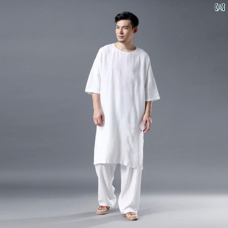 ・カテゴリ: 民族衣装・対象年齢層: 18~24歳・主な素材: 綿、麻30%・着用シーン: カジュアル・デザイン: ジャカード織り・加工: 高温定型・カラー展開: ホワイト、ブルー・サイズ展開: ゆったりサイズ・スタイル: 中国風