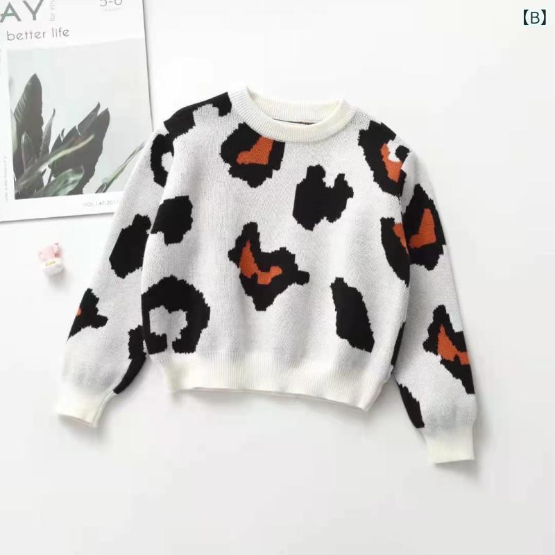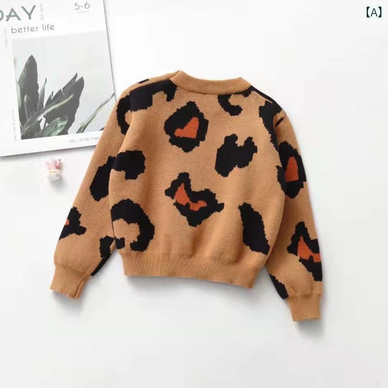 ・カテゴリ: 子供用セーター・性別: ユニセックス・スタイル: 韓国風・対象年齢: 幼児向け(3〜8歳、身長100〜140cm)・主な素材: 綿99%・生地加工: 柔軟加工・厚さ: 普通・糸の太さ: 普通・ネックライン: クルーネック・袖丈: 長袖・着脱タイプ: プルオーバー・柄: プリント・カラー展開: ブラウンレオパード、ホワイトレオパード・サイズ展開: 80cm、90cm、100cm、110cm、120cm
