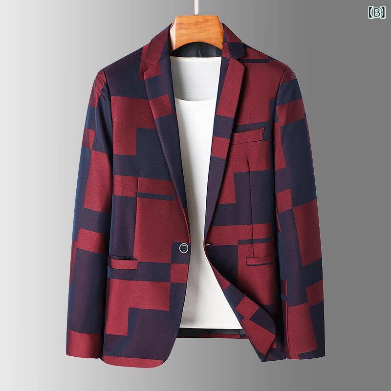 ・カテゴリ: カジュアルジャケット・スタイル: 青春流行・対象: 成人・対象性別: メンズ・シーン: カジュアル・主な素材: リネンコーデュロイ・フィット: スタイリッシュフィット・ネックライン: ノッチドラペル・フロント: シングルブレスト1つボタン・袖丈: 長袖・柄: 無地・詳細スタイル: カジュアルブレザー・ポケット: 玉縁ポケット・裾デザイン: ラウンドヘム・洗濯: 洗濯機洗い可・カラー展開: ブラック、ワインレッド、ネイビー・サイズ展開: M、L、XL、2XL、3XL、4XL、5XL、6XL