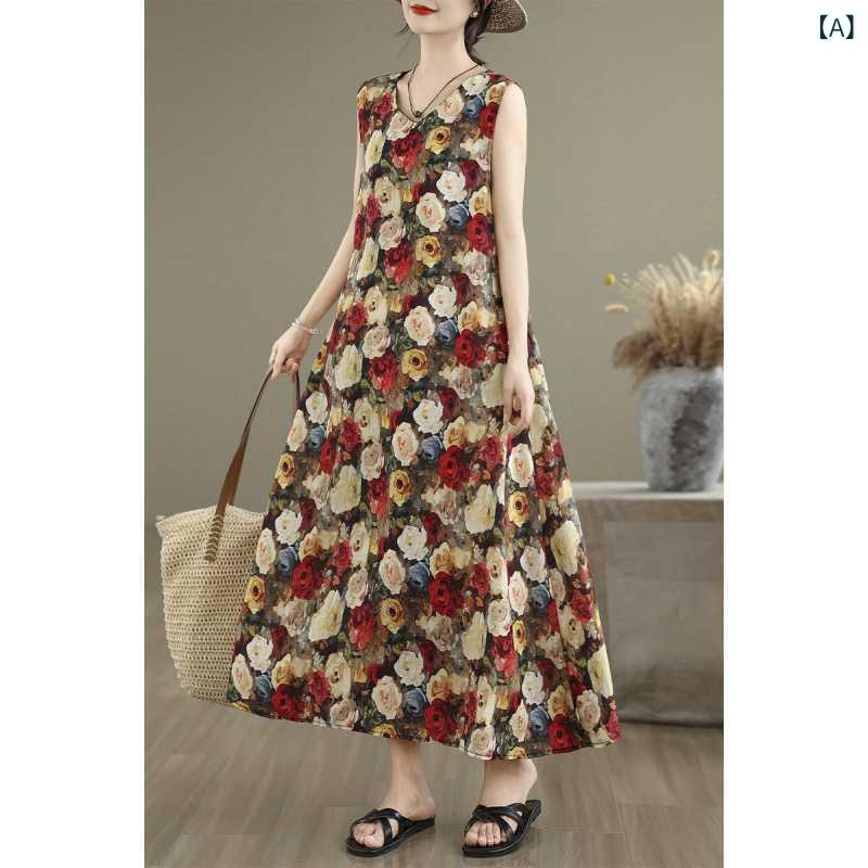 ・デザイン: プリーツ・主な素材: 綿 70~80%、ポリエステル 30%以下・サイズ展開: フリーサイズ・スタイル: 文芸レトロ、エレガント・スカートタイプ: Aライン・ネックライン: Vネック・対象: 成人・スカート丈: ロング丈・袖丈: ノースリーブ・性別: レディース