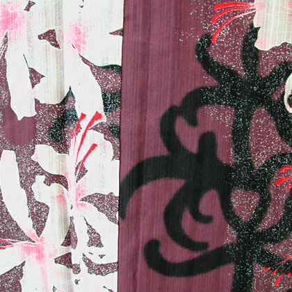 紫地に黒色や白ボカシの豪華なお花が印象的なオシャレな浴衣です。