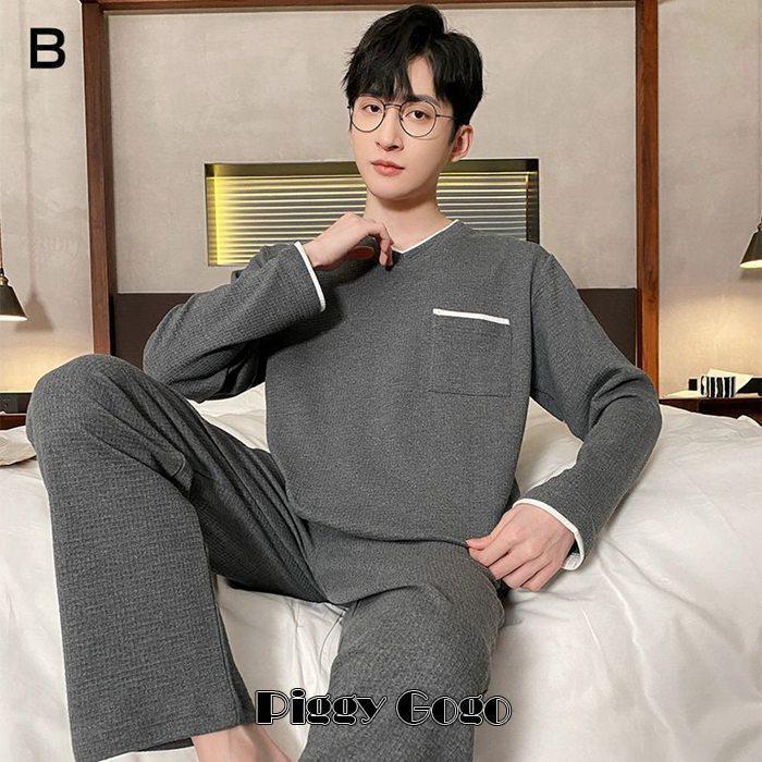 ルームウェア パジャマ ワッフル メンズ セットアップ 上下セット 長袖 配色 ロングパンツ 秋 春 プレゼント ソフト カジュアル シンプル 男性 男の子