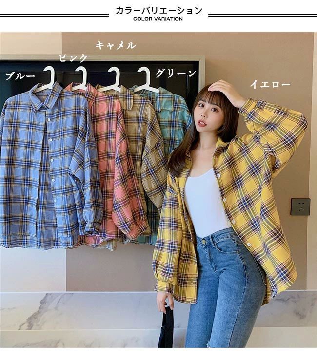 メーカー希望小売価格はメーカーカタログに基づいて掲載していますレディース用の長袖シャツが新入荷 ゆったりとしたシルエットに肌に優しい素材で最適な着心地、体型カバーも果たせる レトロなチェック柄デザインにトレンディーな配色でお洒落度満点 ボーイッシュ風カジュアル系ファッションの定番、ボトムスとのコーデも自由 メインとしても、重ね着アイテムとしても、ロングシーズンで活躍できる一枚 長袖シャツ チェック柄 シャツ ゆったり レディース カジュアルシャツ チェック柄シャツ ブラウス ライトアウター シャツジャケット 冷房対策 レディース用の長袖シャツが新入荷 ゆったりとしたシルエットに肌に優しい素材で最適な着心地、体型カバーも果たせる レトロなチェック柄デザインにトレンディーな配色でお洒落度満点 ボーイッシュ風カジュアル系ファッションの定番、ボトムスとのコーデも自由 メインとしても、重ね着アイテムとしても、ロングシーズンで活躍できる一枚 カラー:ブルー ピンク キャメル グリーン イエロー 素材 ポリエステル サイズ(cm) F F 着丈69(前)/77(後ろ) バスト122 ご注意:
