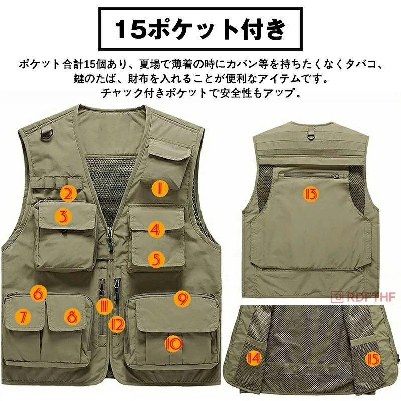 ■商品名:多機能ベスト 作業ベスト フィッシングベスト カメラマンベスト タクティカルベスト アウトドアベスト キャンプベスト ワークマンベスト 登山ベスト 春夏秋 アウトドア ナイロン 15ポケット お釣 登山 撮影用 大きいサイズ 父の日