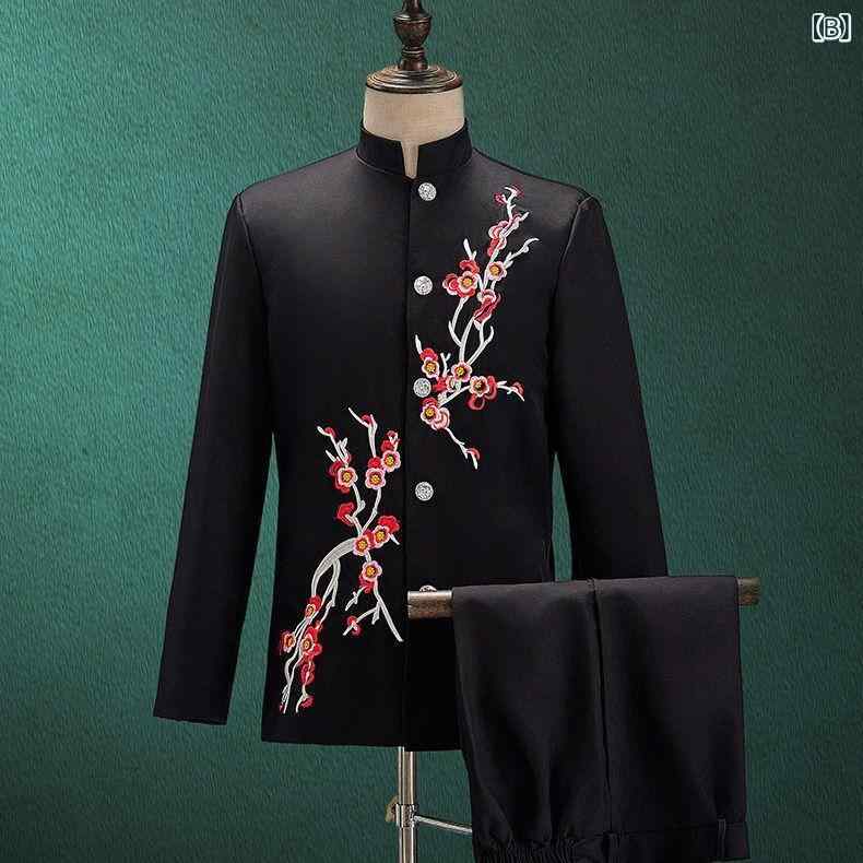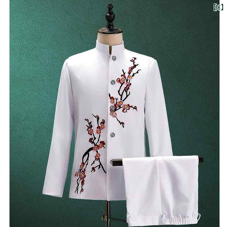 ・カテゴリ: 中山服・主な素材: ラビットファー・生地: コーデュロイ・用途: ダンス・加工: 針縫い・カラー展開: ホワイト青花瓷、ブラック梅花、ホワイト梅花・スタイル: 中国風・性別: メンズ