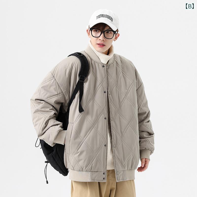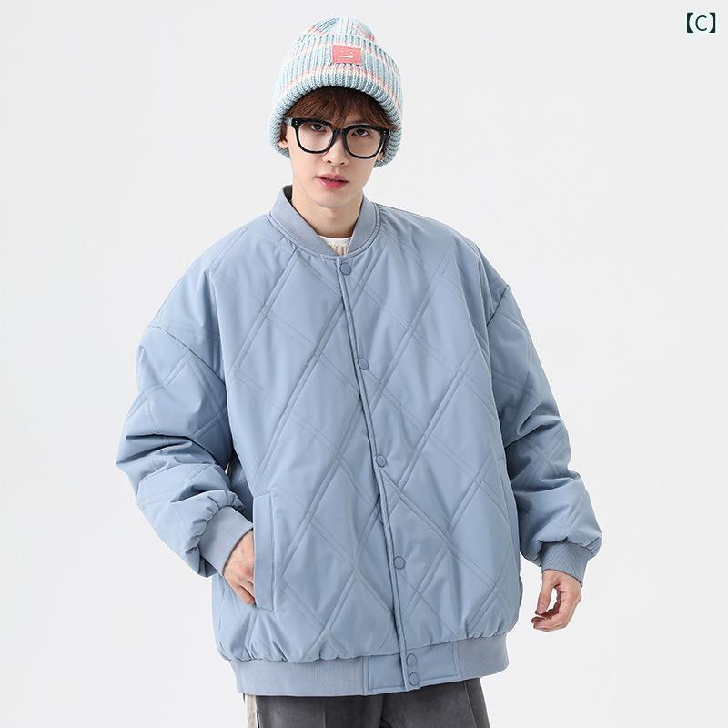 ・カテゴリ: 中綿ジャケット・スタイル: 韓国・対象年齢層: 20代~30代・性別: メンズ・シルエット: ゆったり・襟型: スタンドカラー・前立て: シングルボタン・厚さ: 厚手・柄: 無地・中綿: コットン・主な素材: ポリエステル・裏地素材: ポリエステル・加工: ノンアイロン・着用シーン: カジュアル・カラー展開: ブラック、カーキ、ブルー、キャメル・サイズ展開: M、L、XL、XXL