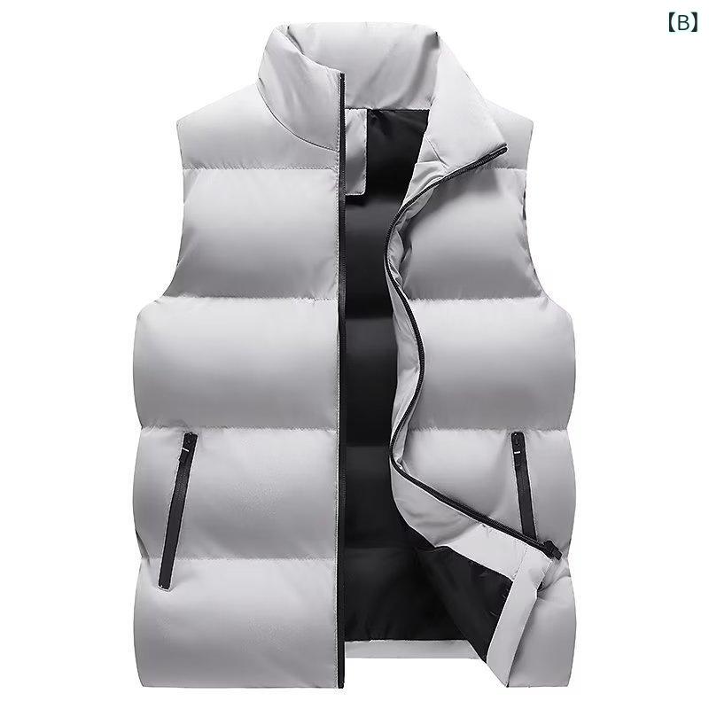 ・カテゴリ: 中綿ベスト・スタイル: ストリートカジュアル・フィット: ゆったり・ネックライン: スタンドカラー・フロント: ジップアップ・厚み: 厚手・柄: 無地・主な素材: ポリエステル95%・裏地素材: ポリエステル・着用シーン: カジュアル・対象: ティーンエイジャー・加工: ノンアイロン加工・ディテール: ジッパー装飾・ポケット: ジッパーポケット・裾: ストレートヘム・カラー展開: ブラック、グレー、ブルー・サイズ展開: M、L、XL、XXL、3XL、4XL、5XL・性別: メンズ