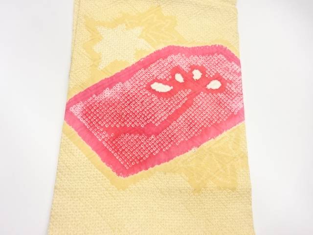 <名古屋帯サイズ>(単位:cm) 太鼓部分長さ 112 太鼓部分幅 30 前部分長さ 232 前部分幅 15 時代 現代(1989 - ) 状態 非常によい 素材 正絹 色目 薄黄色 技法 絞り 【商品説明】 状態は大変良いです。 着用可能です。