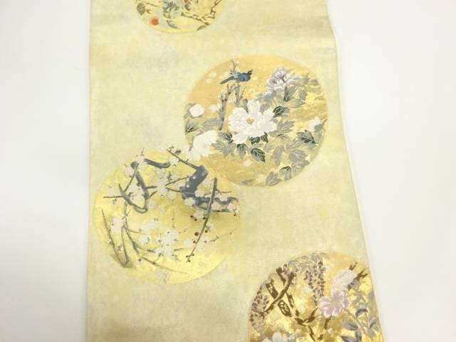 <帯サイズ>(単位:cm) 長さ 432 幅 30.5 時代 現代(1989 - ) 状態 非常によい 素材 正絹 色目 金 【商品説明】 帯幅部分折れ山線に薄くすみが有ります。 状態は大変良いです。 着用可能です。