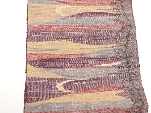<名古屋帯サイズ>(単位:cm) 太鼓部分長さ 110 太鼓部分幅 31 前部分長さ 246 前部分幅 15.5 時代 現代(1989 - ) 状態 非常によい 素材 正絹 色目 紫 技法 手織り 【商品説明】 手先〜22センチ辺りに数点の薄アクがあります。 状態は大変良いです。 着用可能です。